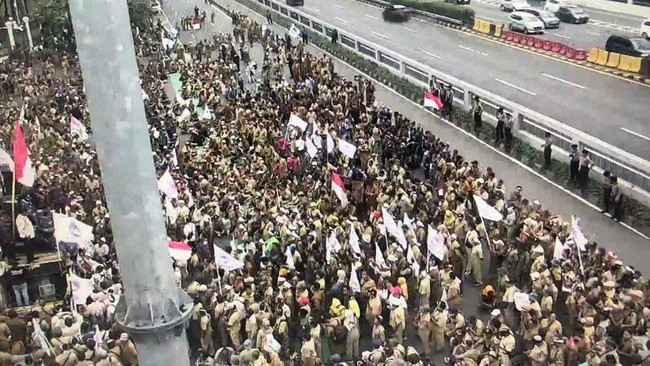 Persatuan Perangkat Desa Indonesia (PPDI) menggelar demo di kawasan gedung DPR, Jakarta, pagi hari ini. Sebanyak 1.713 personel Polda Metro Jaya dikerahkan untuk mengamankan jalannya demo tersebut.