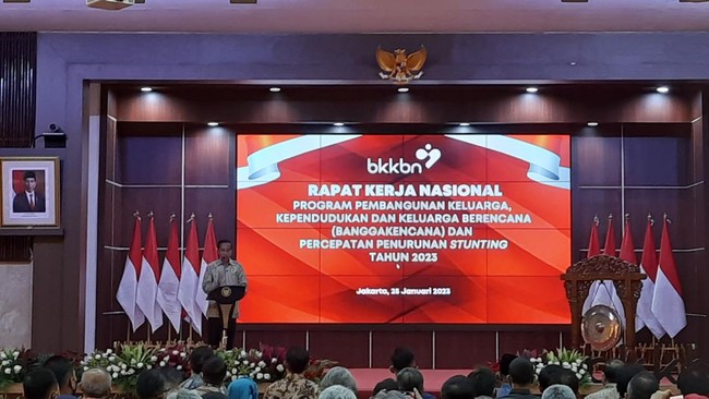"Jangan sampai keliru karena yang lalu-lalu saya lihat di lapangan dari kementerian/lembaga masih memberikan biskuit pada anak. Cari mudahnya, saya tahu. Lelangnya gampang," kata Jokowi di Rakernas BKKBN di Jakarta Timur, Rabu (25/1/2023).