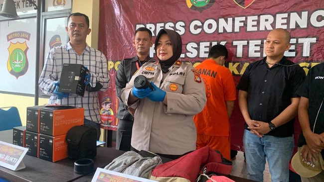 "Jadi kejadian di tanggal 25 Desember sekitar jam 22.30 WIB, yang dicuri adalah 28 unit atau 28 item dari produk Sony, 11 kamera Sony dan 17 lensa Sony," kata Kapolsek Tebet Kompol Chitya Intania Kusnita kepada wartawan di Polsek Tebet, Rabu (25/1/2023).