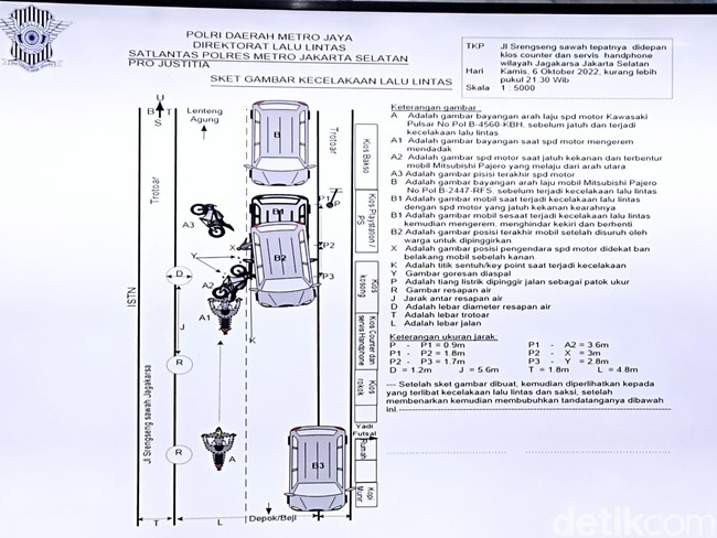 Dari keterangan gambar, diperlihatkan juga posisi Hasya terkapar di dekat ban belakang mobil sebelah kanan setelah terjadinya kecelakaan lalu lintas tersebut.