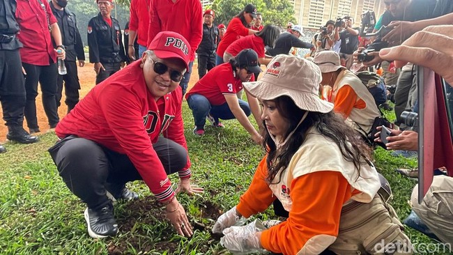 PDI Perjuangan menggelar kegiatan penghijauan dengan melakukan penanaman pohon di GOR Taman Saparua, Kota Bandung, Jawa Barat. Kegiatan ini merupakan rangkaian acara memperingati HUT PDIP ke-50.