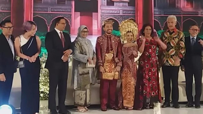 Gubernur Jawa Tengah Ganjar Pranowo menghadiri pernikahan komedian Kiky Saputri dengan kekasihnya M Khairi. Selain Ganjar, Anies Baswedan juga ikut terlihat hadir.