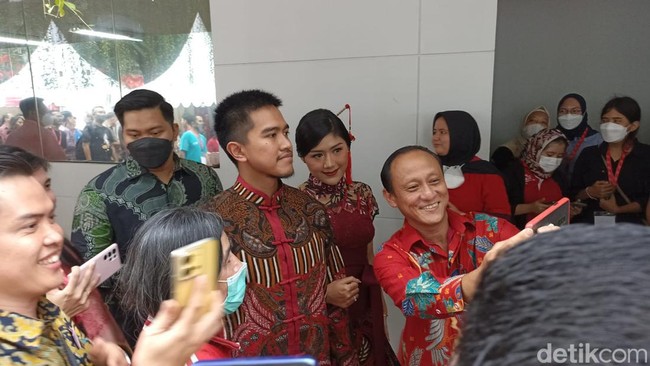 Putra bungsu Presiden Joko Widodo, Kaesang Pangarep, turut menghadiri perayaan Imlek Nasional 2023 di Lapangan Banteng, Jakarta Pusat. Kaesang didampingi oleh sang istri, Erina Gudono.