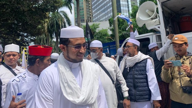 Husein Alatas, yang juga Ketua Umum Front Persaudaraan Islam (FPI), tampak duduk di depan Korlap PA 212, Buya Husein Alatas. Mereka terlihat mendengarkan orasi yang disampaikan secara bergantian oleh massa aksi.