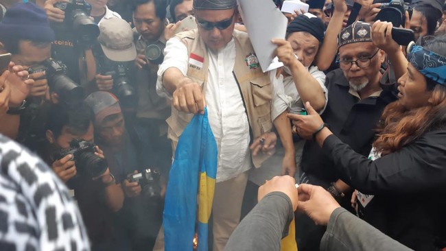 Setelah itu, mereka terlihat membakar bendera Swedia. Setelah membakar bendera Swedia, mereka berpindah ke Kedubes Belanda.