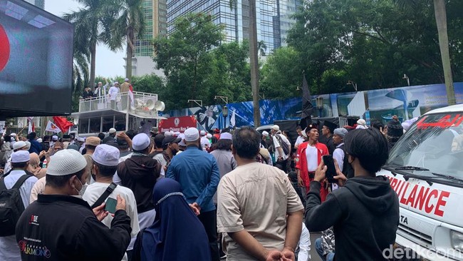 "Intinya jawaban pemerintahan Swedia melalui wakil jubir dubesnya, beliau mengatakan bahwa lewat perdana menterinya sudah mengecam dan mengutuk tindakan Rasmus Paludan yang membakar Al-Qur'an. Kemudian, surat kita tuntutan kita akan segera dilayangkan disampaikan ke Pemerintah Swedia," kata orator di atas mobil komando, Senin (30/1/2023).