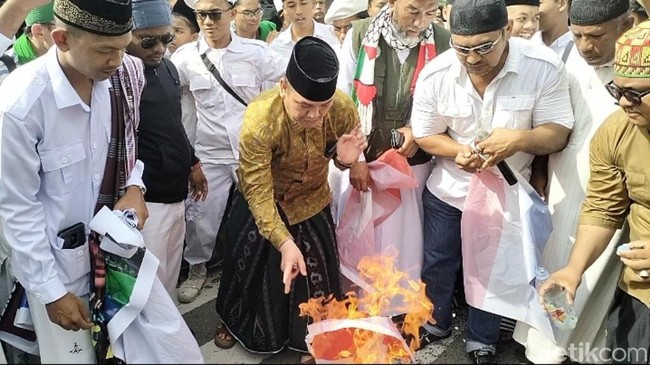 Dalam aksi tersebut, massa juga menjadikan bendera Denmark dan Belanda sebagai alas untuk diinjak. Para peserta aksi meminta pemerintah Indonesia memutuskan hubungan dengan negara tempat pembakaran Al-Qur'an terjadi.