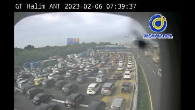 Sementara itu, pantauan dari CCTV Jasa Marga, pukul 07.38 WIB antrean kendaraan juga terjadi di jalan arteri setelah keluar pintu tol Halim. Terlihat kendaraan berjalan dengan kecepatan lambat karena penumpukan kendaraan.