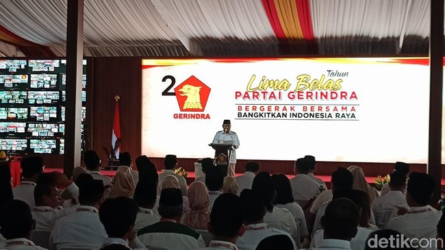 Acara ini dihadiri Sekjen Gerindra Ahmad Muzani, Ketua Harian DPP Gerindra Dasco, hingga Wakil Ketua Dewan Pembina Gerindra Sandiaga Uno.