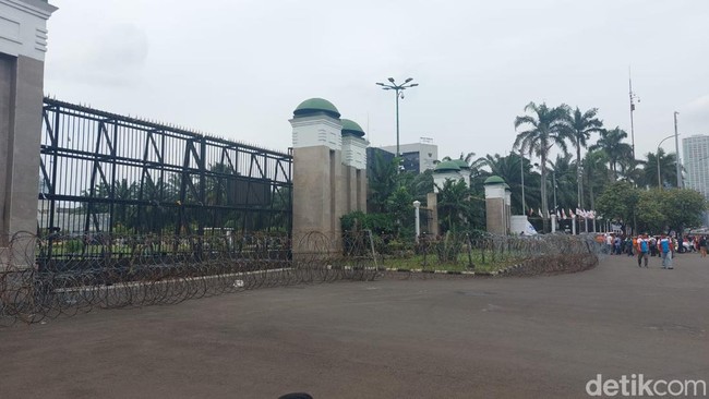 Pantauan detikcom, Senin (6/2/2023), pukul 11.05 WIB, pagar kawat berduri dipasang membentang di sekitar gerbang gedung DPR/MPR. Tinggi kawat berduri tersebut lebih dari 1,5 meter.