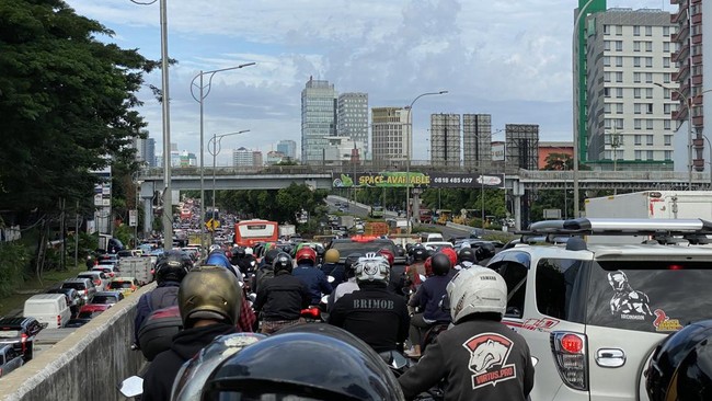 Pantauan detikcom di flyover TB Simatupang arah Fatmawati, Kamis (9/2/2023), pukul 08.45 WIB, terlihat kemacetan sudah terjadi mulai mulut flyover TB Simatupang mengular hingga lampu merah Fatmawati. Bus TransJakarta tampak turut terhambat.