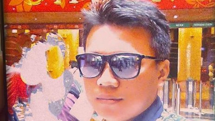 Beni tampak menggunakan kacamata hitam. Lokasi swafoto Beni itu diduga merupakan kasino judi yang acap kali digunakan Lukas Enembe saat di Singapura.