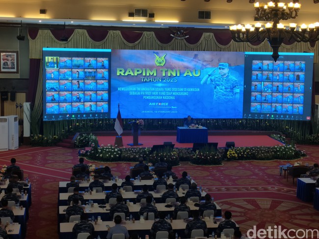 Rapim dilaksanakan di Gedung Puri Ardhya Garini Halim Perdanakusuma, Jakarta Timur, Jumat (10/2/2023). Rapat mengusung tema 'Mewujudkan TNI Angkatan Udara yang Disegani di Kawasan, Sebagai Patriot NKRI yang Siap Mendukung dan Mengamankan Pembangunan Nasional'.
