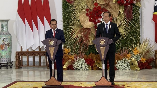 "Dan selain ketiga isu bilateral tersebut, saya juga menyinggung mengenai keketuaan Indonesia di ASEAN sesuai hasil KTT ASEAN di Phnom Penh, Timor Leste secara prinsip telah diterima sebagai anggota ASEAN," kata Jokowi usai bertemu dengan Taur Matan Ruak di Istana Kepresidenan Bogor, Jawa Barat, Senin (13/2/2023).