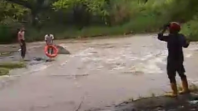 Peristiwa itu terjadi pada sore tadi. Warga yang mengetahui adanya dua anak terjebak di sungai itu, segera melapor ke petugas.