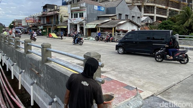 Pantauan detikcom di lokasi, Senin (13/2/2023), pukul 17.03 WIB, terlihat pagar Jembatan Jatijajar belum dilapisi cat. Trotoar pada jembatan tampak masih kotor akibat pengerjaan yang masih dikerjakan petugas.