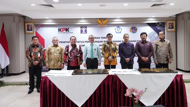KPK menyerahkan aset rampasan dari kasus korupsi kepada Kementerian Hukum dan HAM (Kemenkumham) serta Kementerian ATR/BPN. Aset yang diserahkan bernilai Rp 57 miliar.