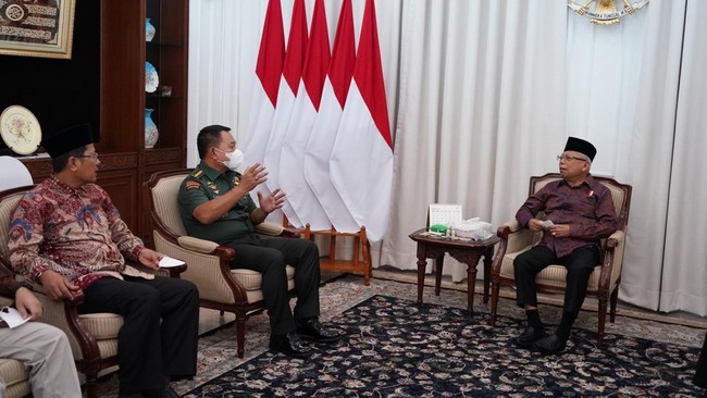 Wakil Presiden (Wapres) Ma'ruf Amin menerima audiensi Kepala Staf Angkatan Darat (KSAD) Jenderal TNI Dudung Abdurachman dan Ketua Majelis Ulama Indonesia (MUI) Bidang Dakwah dan Ukhuwah Cholil Nafis di kediamannya. Kedatangannya yakni hendak mengundang Ma'ruf untuk hadir di acara peringatan Isra Mi'raj Nabi Muhammad SAW di Cianjur, Jawa Barat.