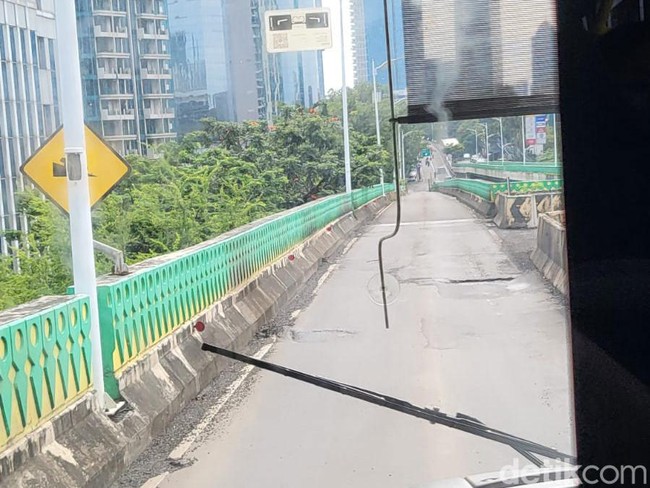 Berdasarkan pantauan detikcom, lubang-lubang di aspal busway elevated ini tampak di ruas Kebayoran Baru arah Halte Tendean. Bus akan menghindari lubang jalan ini dengan cara bermanuver ke arah jalur yang berlawanan, bila kebetulan di jalur yang berlawanan tidak ada bus yang lewat.