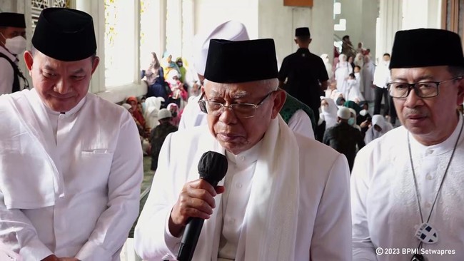 Pernyataan tersebut disampaikan Maruf Amin setelah menghadiri Peringatan Isra Mikraj dan istigasah kubro yang digelar di Cianjur, Jawa Barat, Minggu (19/2/2023) pagi. Dalam kegiatan tersebut, hadir pula KSAD Jenderal TNI Dudung Abdurrahman, Waketum MUI Marsyudi Suhud, Wakil Gubernur Jawa Barat, dan Bupati Cianjur Herman Suherman.
