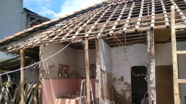 "Atap rumah ambruk di bagian kamar mandi dan ruangan kosong, serta tembok rumah jebol pada rumah milik Bapak Suteja, dihuni 2 Jiwa. Korban luka atau jiwa nihil," kata Theofilo dalam keterangannya, Minggu (19/2/2023).