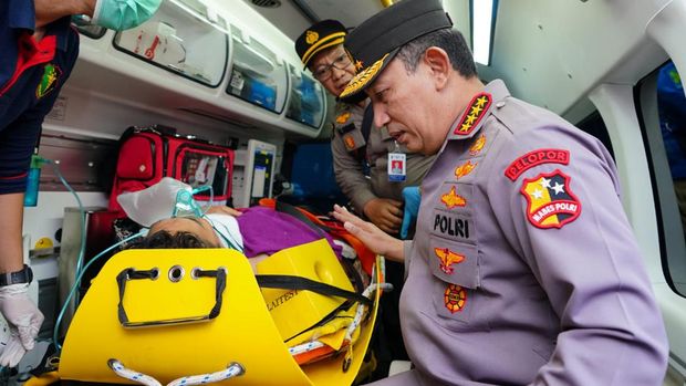 Foto: Kapolri Jenderal Listyo Sigit sempat berbincang singkat dengan Kapolda Jambi Irjen Rusdi Hartono yang baru saja dievakuasi. (dok istimewa) |