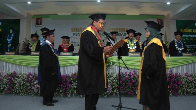 "Siapa hayo yang baper cunggg, MasyaAllah tabarokallah. Selamat untuk Prof. Dr. Hj. Umma Farida, Lc., M.A atas pengukuhan guru besar hari ini yang dikukuhkan oleh rektor IAIN Kudus sekaligus suami tercinta," tulis akun tersebut seperti dilihat detikJateng, Kamis (23/2/2023).
