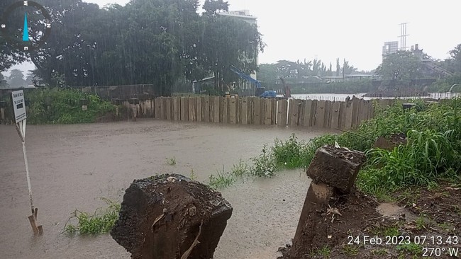 Pada waktu yang sama, detikcom mencoba melihat turap pada kali tersebut. Namun, tak berhasil sebab jalan menuju ke arah turap terpasang tengah tergenang oleh banjir.