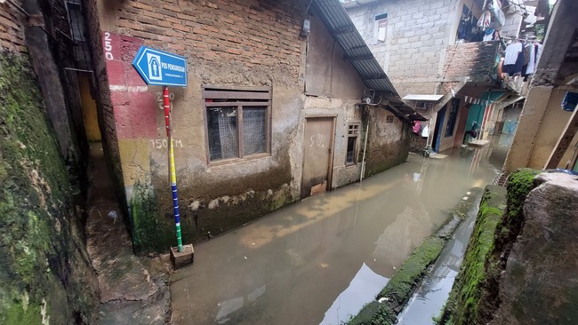 Banjir merendam permukiman warga di RT 15/RW 03 Jalan Taman Harapan, Cawang, Jakarta Timur. Warga di wilayah ini pun pasrah karena sudah berulang kali terkena banjir.