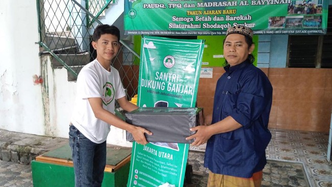 Relawan Santri Dukung Ganjar Jabodetabek mengunjungi Pondok Pesantren (Ponpes) Al Bayyinah di Kelurahan Rawabadak Utara, Kecamatan Koja, Jakarta Utara (Jakut). Kunjungan ini mendapat sambutan positif dari para santri.