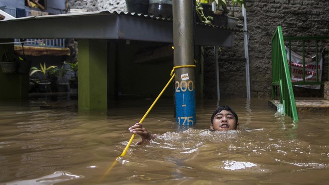 Tinggi air yang menggenangi puluhan RT di Jakarta itu bervariasi. Ada yang tergenang air setinggi 20 cm, namun ada pula yang mencapai 130 cm atau 1,3 meter.