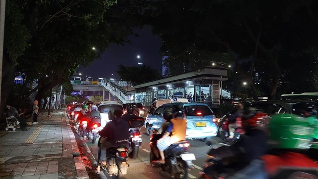 Pantauan detikcom, Selasa (28/2/2023), pukul 19.25 WIB, kemacetan mulai terjadi setelah perempatan Jalan Gatot Subroto dengan Kuningan-Mampang Prapatan.
