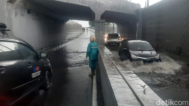 "Sat Lantas Polresta Bandara Soekarno-Hatta melaksanakan pengalihan arus lalu lintas di Perimeter Selatan akibat adanya genangan air di Underpass Perimeter Selatan," tulis akun Twitter @TMCPoldaMetro seperti dilihat, Rabu (1/3/2023).