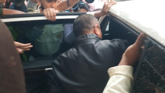 Rafael terlihat menaiki mobil Toyota Innova warna putih. Dia tak menjelaskan detail apa saja yang ditanyakan KPK.