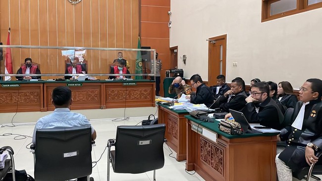 Pantauan detikcom di PN Jakarta Barat, Kamis (2/3/2023), sidang dimulai sekitar pukul 10.00 WIB. Sidang digelar di ruang sidang utama Kusumah Atmadja. Teddy pun terlihat hadir secara langsung dalam persidangan ini.
