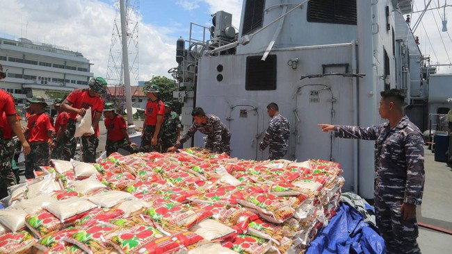 Bantuan yang diangkut antara lain 2.000 liter minyak goreng, 700 kaleng sarden, 10.000 dus mie instan, hingga 10 ton beras. Selain itu, ada juga bantuan dari Badan Penanggulangan Bencana Daerah (BPBD) Jawa Timur berupa 15 ton beras, bantuan dari Dinas Perindustrian dan Perdagangan (Disperindag) Jatim yakni 5 ton gula, dan 300 tabung elpiji 3 kg.
