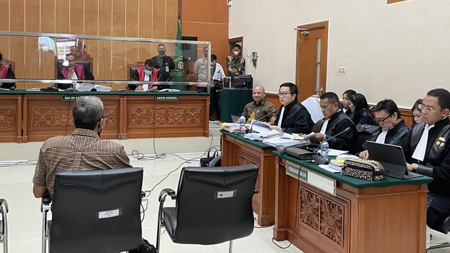 "Sebentar dulu, dia baca dulu tenang. Biar dia bisa menjawab, jangan terus nyerocos ya, tunggu dulu dijawabnya, belum dibukanya," ujar hakim ketua.