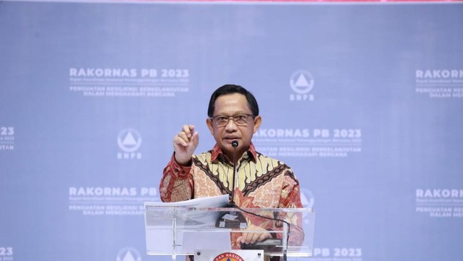 Hal ini disampaikan Tito dalam Rapat Koordinasi Nasional (Rakornas) Penanggulangan Bencana 2023 bertajuk 'Penguatan Resiliensi Berkelanjutan dalam Menghadapi Bencana' di Jakarta International Expo Kemayoran. Kegiatan ini digelar oleh Badan Nasional Penanggulangan Bencana (BNPB) serta melibatkan BPBD dari berbagai daerah.