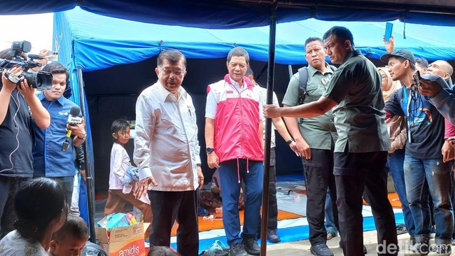 Ketua Umum PMI itu tampak masuk ke dalam tenda-tenda pengungsi. JK tampak melihat kondisi para pengungsi tersebut.