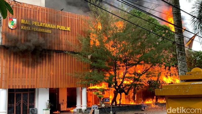 Kebakaran terjadi di Kantor Mal Pelayanan Publik (MPP) di Pekanbaru, Riau. Api terlihat membubung tinggi.