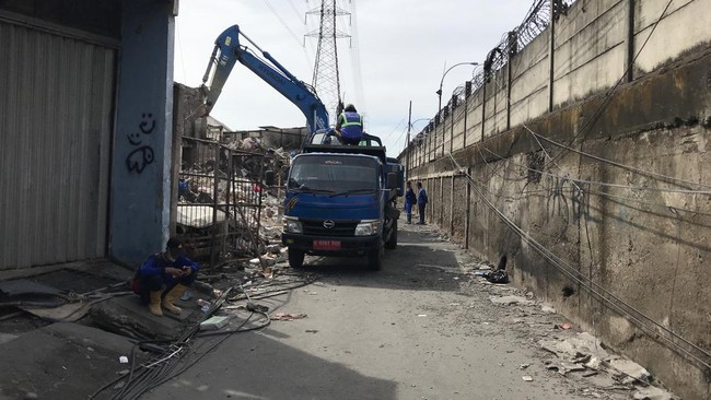 Petugas dari Satpol PP, Sudin Bina Marga Jakut, dan Sudin SDA Jakut juga terlihat berada di lokasi. Ada juga satu unit ekskavator yang digunakan untuk membersihkan sisa kebakaran. Selain itu, tampak posko bantuan di sekitar lokasi.