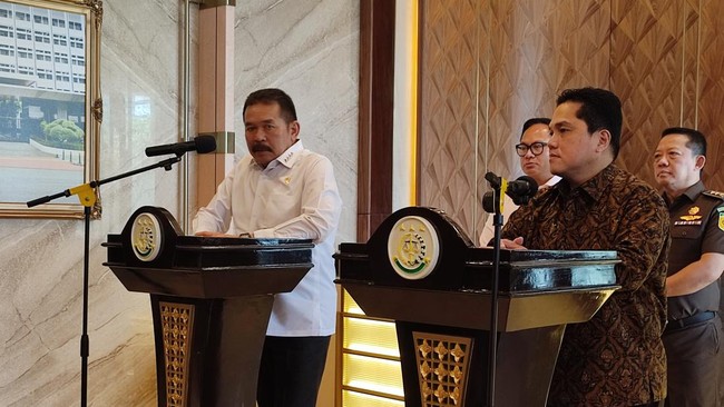 "Saya rasa aset-aset yang sudah diserahkan itu salah satunya kan bagaimana tentu menyelesaikan surat-surat, ya, atau misalnya tentu hasil daripada sitaan Pak Jaksa Agung yang kemarin sudah bernilai, surat berharga Rp 3,1 triliun ya," kata Erick Thohir di Kejagung, Jalan Sultan Hasanuddin, Kebayoran Baru, Jaksel, Senin (6/3/2023).