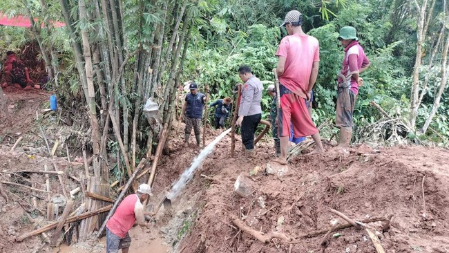 Tanah longsor terjadi di Kampung Palendeng, Desa Sindangwangi, Muncang, Lebak, Banten. Satu orang pria dilaporkan hilang diduga tertimbun material longsor.