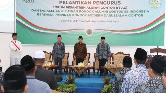 "Alumni Pesantren Gontor dan pondok-pondok pesantren yang didirikan alumni, penting benar menghayati sejara pondok dan sekaligus hymne Pondok Gontor, yang luar biasa mengajarkan dan menginternalisasi cinta pesantren dan cinta bangsa dan negara, yang bahkan sama disebut sebagai ibu, sebagaimana ibu kandung. Itu harus menjadi bagian dari tradisi dan spirit besar untuk melanjutkan berkontribusi mewujudkan cinta kepada umat, bangsa dan negara sebagaimana cinta para santri kepada Ibu kandung mereka masing-masing, untuk menjaga dan menyelamatkan Indonesia dengan cita-cita proklamasi maupun reformasinya, " tuturnya.