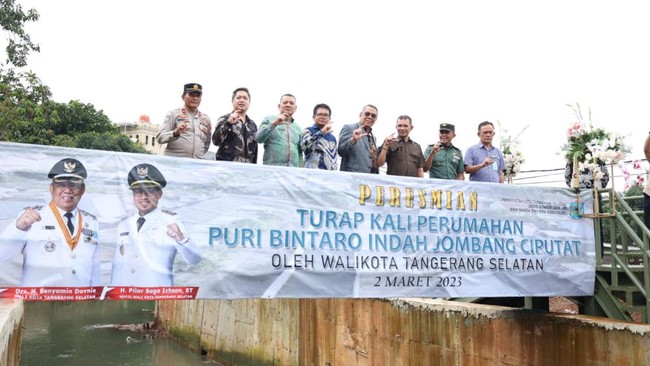 Wali Kota Tangerang Selatan Benyamin Davnie meresmikan pembangunan turap kali perumahan Puri Bintaro Indah (PBI) Jombang, Ciputat. Ia mengatakan pembangunan turap ini sebagai upaya pencegahan banjir.