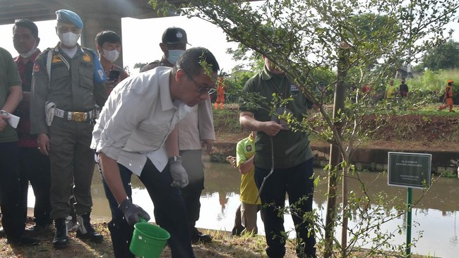 "Awal saya menanam pohon di, simpel saja, di pinggir Becak Kayu. Kenapa saya nanam di situ? Ingin sama dengan tadi, aksi dan kolaborasi. Strukturnya adalah punya Kementerian PU, lahannya punya Kementerian PU, sungainya adalah punya Balai Cisadane. Ada lahan selebar 40 meter panjangnya 5 km itu punya PU," imbuhnya.