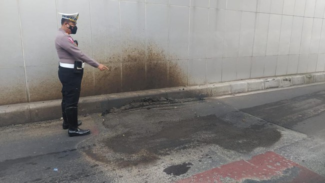 "Hati-hati bagi pengendara bila melintas, saat ini sedang penanganan pihak Bina Marga DKI Jakarta," lanjutnya.