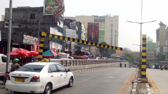 Pantauan detikcom, Jumat (3/3), pukul 15.44 WIB, di lokasi tersebut hanya ada ada tiang penyangga dari pembatas ketinggian kendaraan. Tiang bercat belang hitam-kuning tersebut terpasang di sisi kanan-kiri jalan sebelum underpass Tanah Abang.