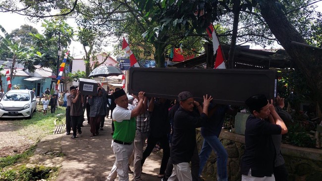 Kedatangan kedua jenazah disambut isak tangis keluarga dan kerabat, yang sudah sejak pagi menunggu di rumah duka. Setelah sempat disemayamkan beberapa saat, kedua jenazah langsung disalatkan dan dimakamkan.