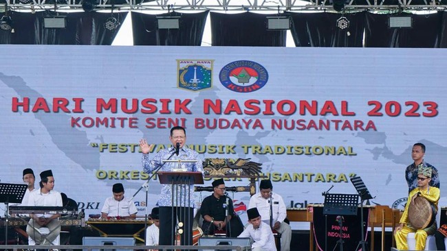 Ketua MPR RI Bambang Soesatyo bersama Ketua Umum Komite Seni Budaya Nusantara (KSBN) serta Kepala Biro Pendidikan dan Mental Spiritual Pemprov DKI Jakarta yang hadir mewakili PJ Gubernur DKI Jakarta, membuka Festival Musik Tradisi dan Orkestra Musik Nusantara. Kegiatan ini merupakan hasil kolaborasi KSBN dengan Pemprov DKI Jakarta yang digelar dalam rangka peringatan Hari Musik Nasional.